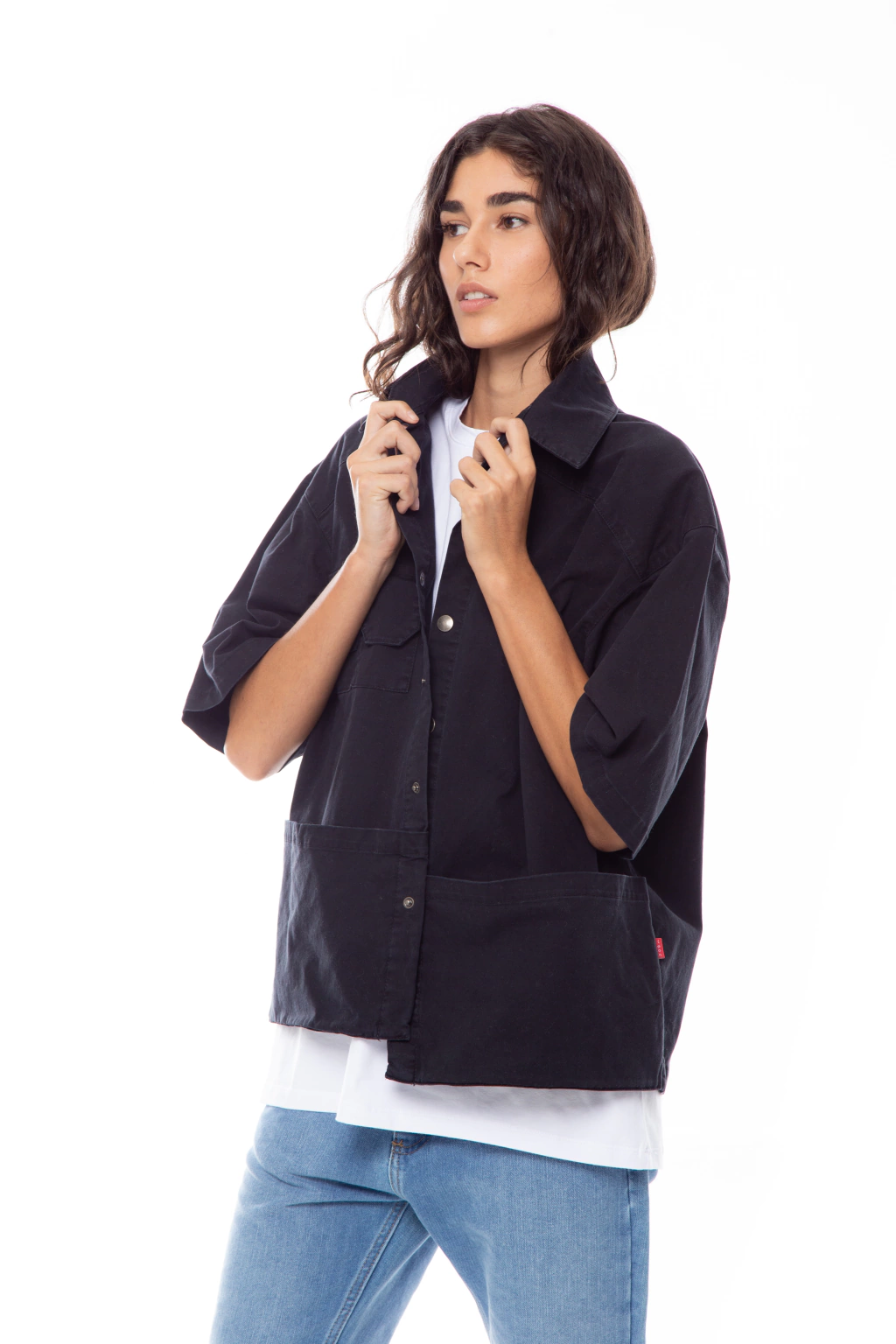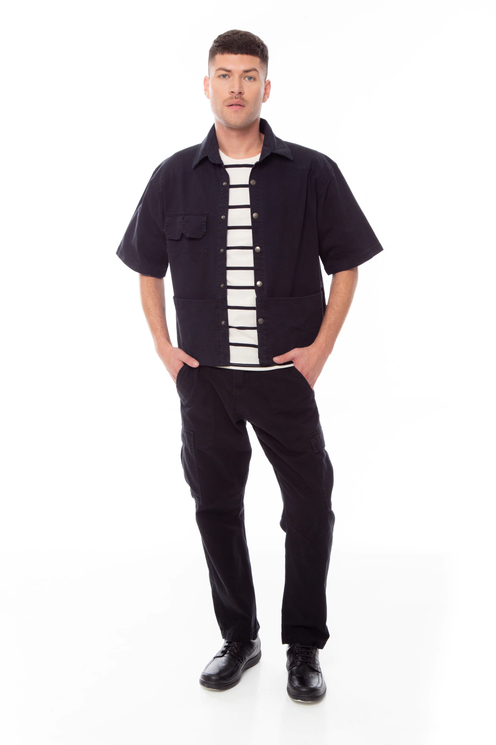 Funcional, práctica y cómoda, así es la sobre-camisa manga corta ZERMATT, confeccionada en una gabardina resistente 100% algodón. Tiene 2 bolsillos pequeños en el pecho y dos grandes en la parte inferior.