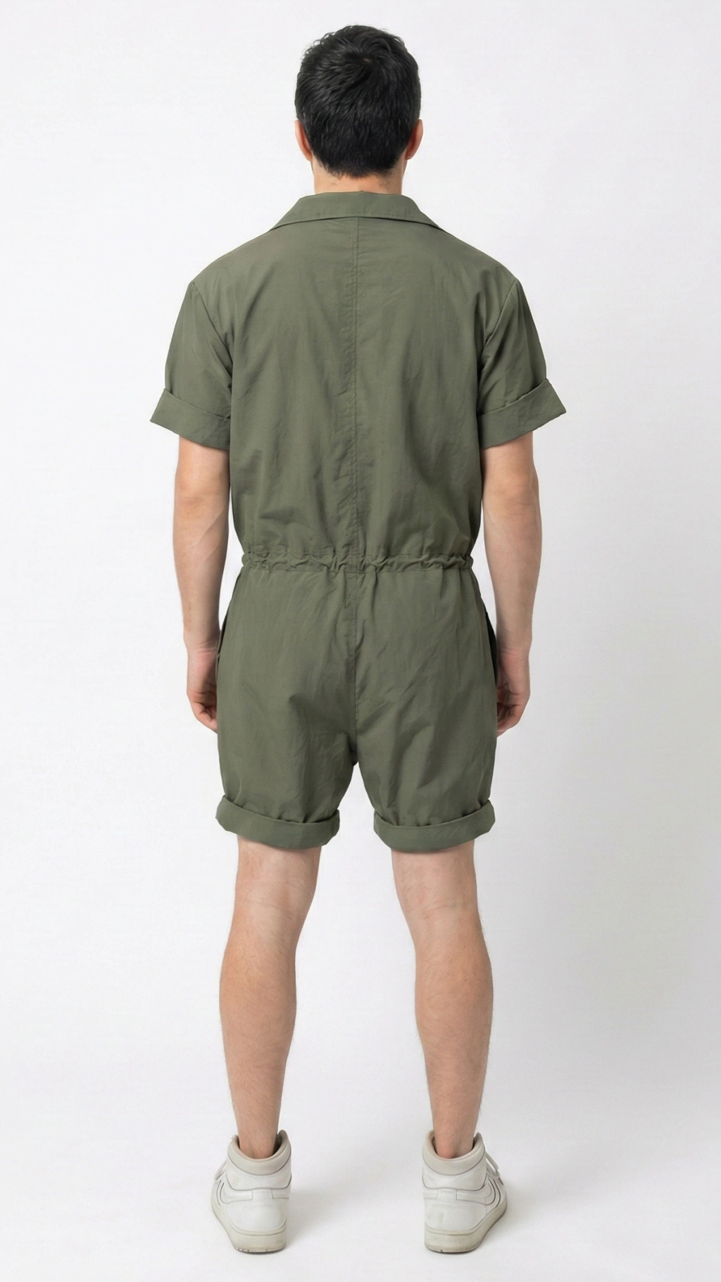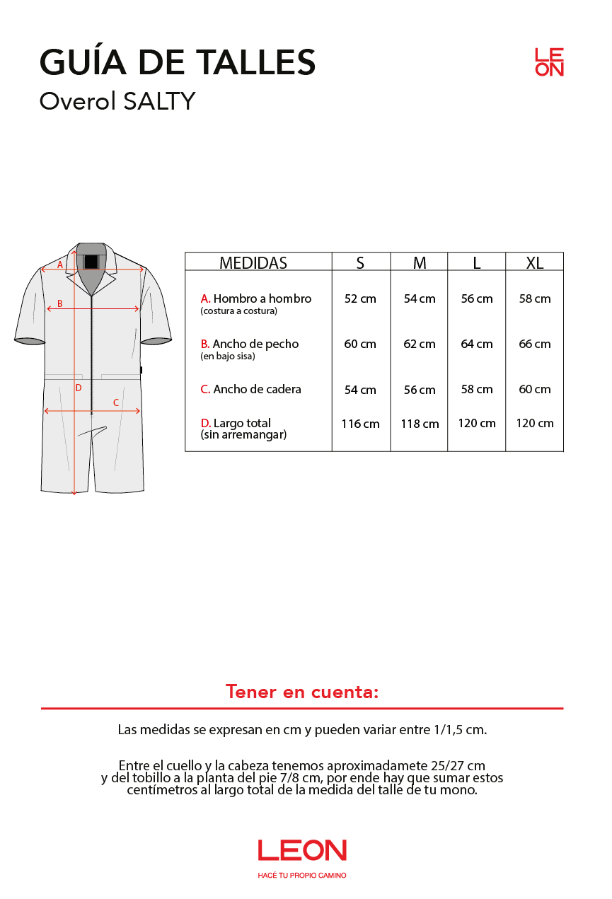 SALTY es un un overol de corte recto, de piernas y mangas cortas, pensado para usar arremangado.