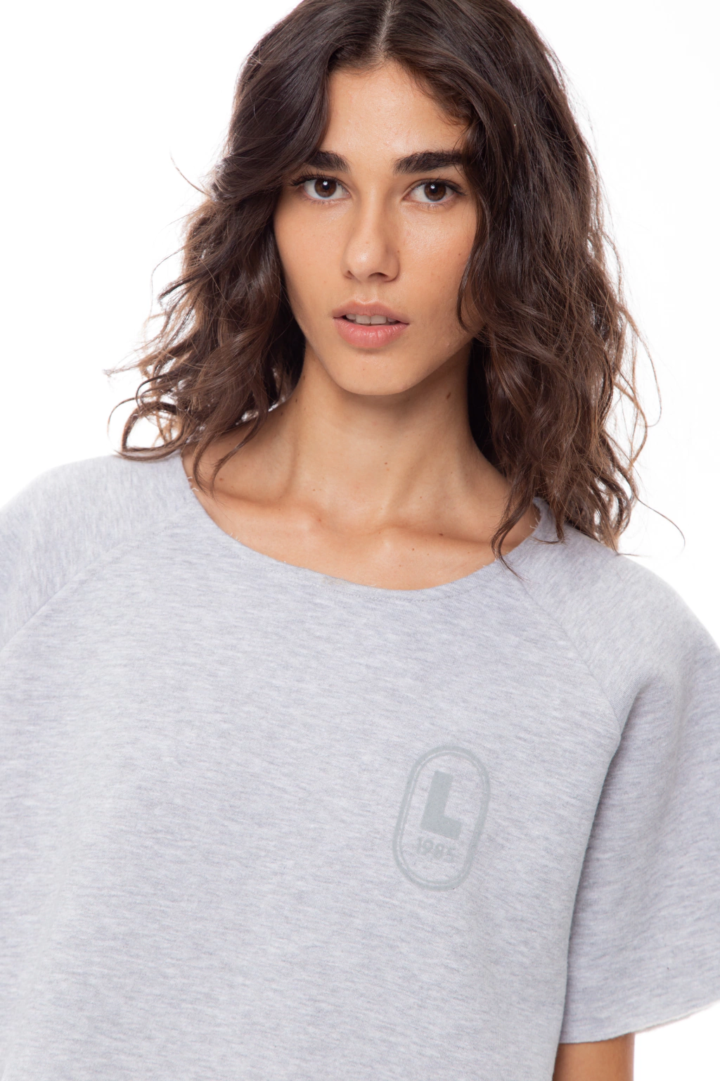 Confeccionada en frisa de algodón, con corte al hilo y estampa de la marca desarrollada para esta tempotrada.